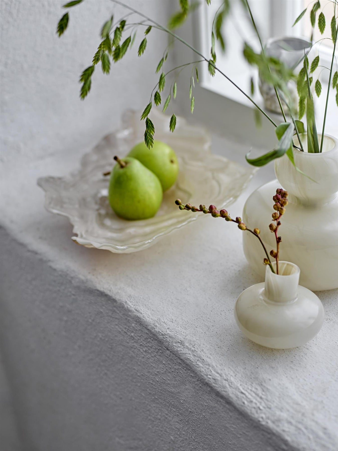 Glasskål med en sprayfarget overflate i en lys beige tone.