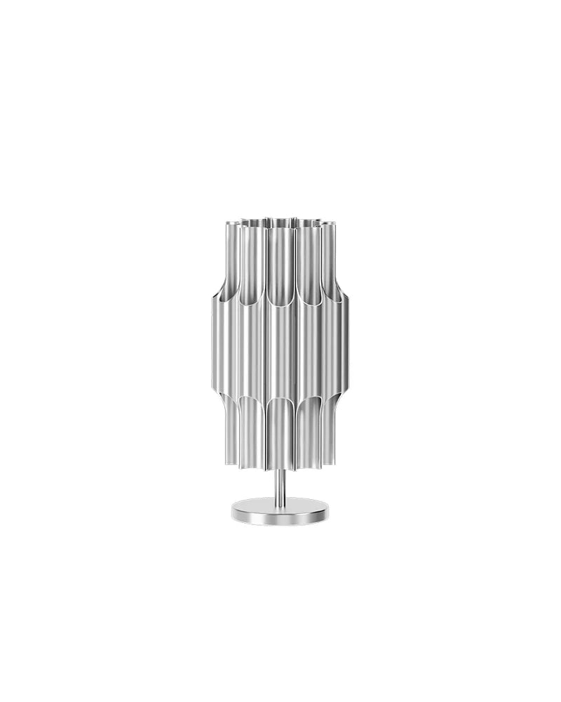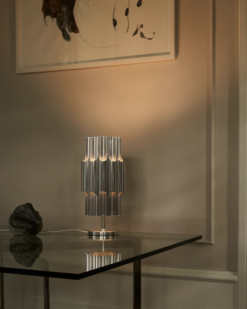 Designet kombinerer lys og skulptur på en elegant måte. Lyset reflekteres i de åpne rørene og skaper både funksjonelt nedlys og en subtil, stemningsfull glød.